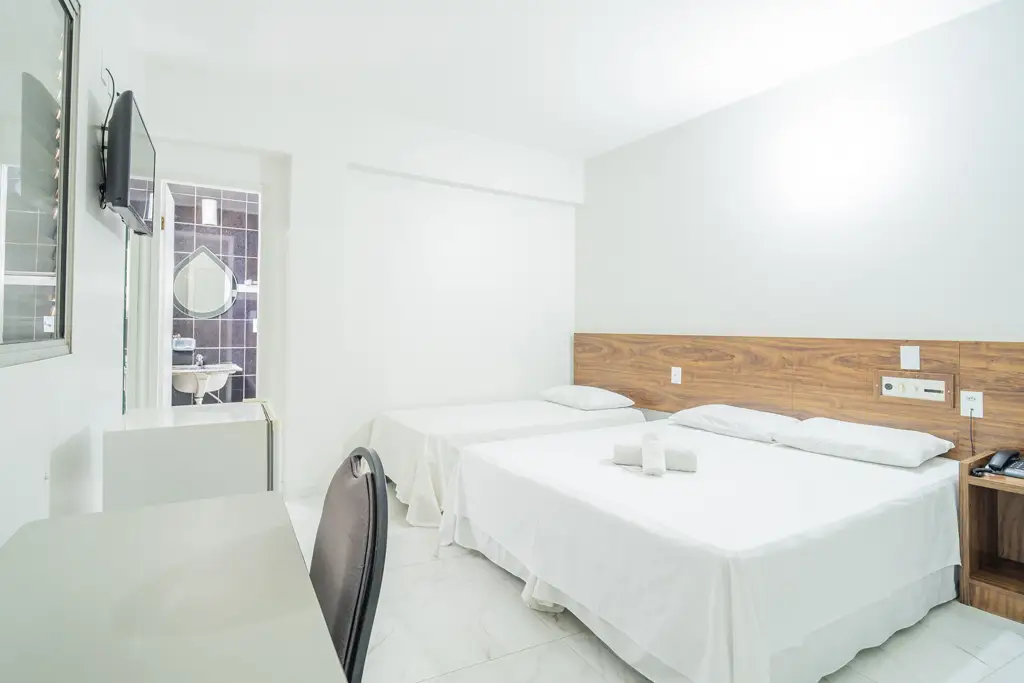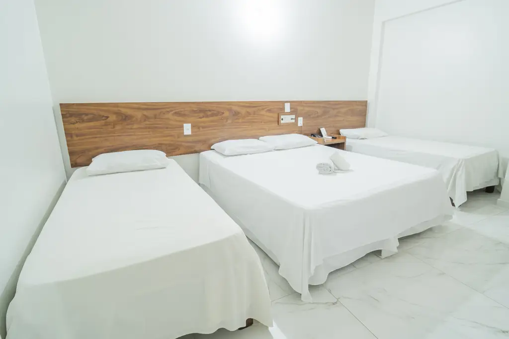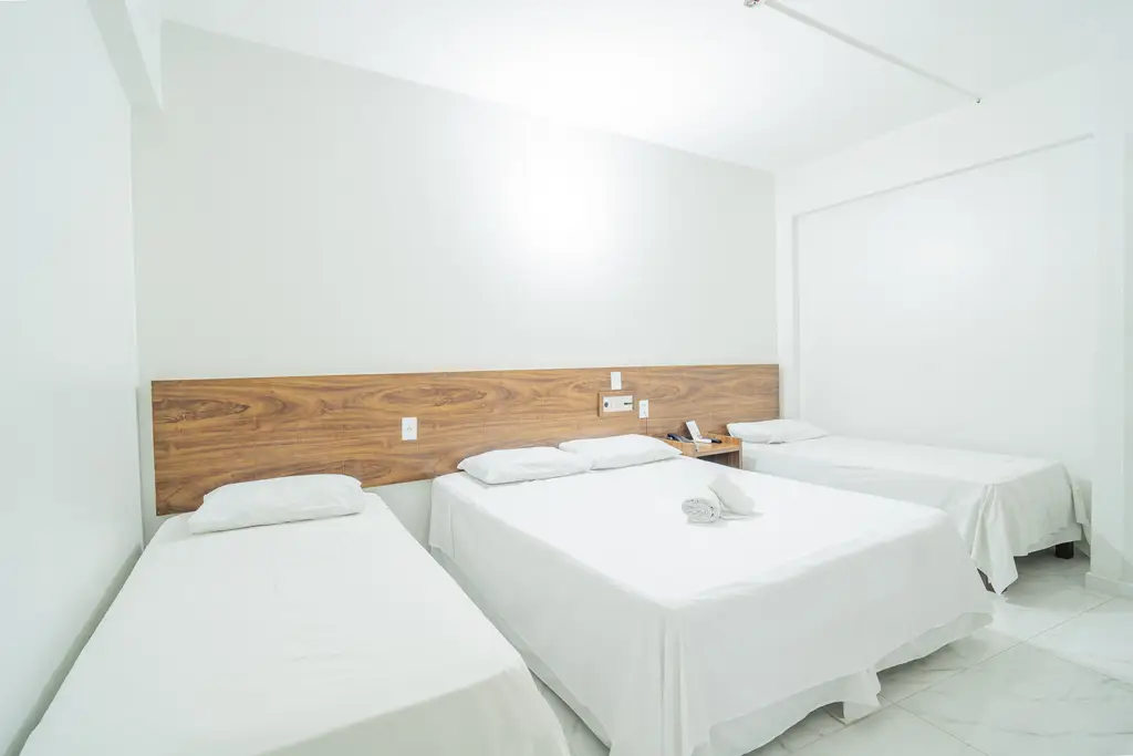 O Apartamento Luxo Triplo é ideal para quem viaja em grupo ou em família e busca praticidade sem abrir mão do conforto. Equipado com cama de casal e uma cama de solteiro, dispõe ainda de ar-condicionado, frigobar, mesa de escritório, TV de tela plana e secador. Um espaço aconchegante e funcional para até três hóspedes.