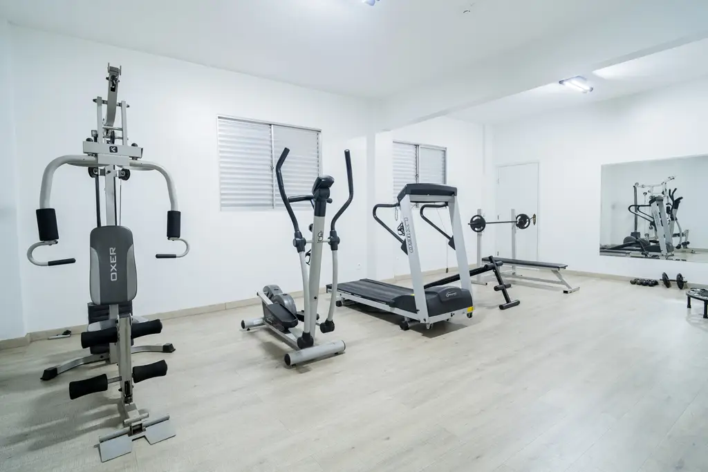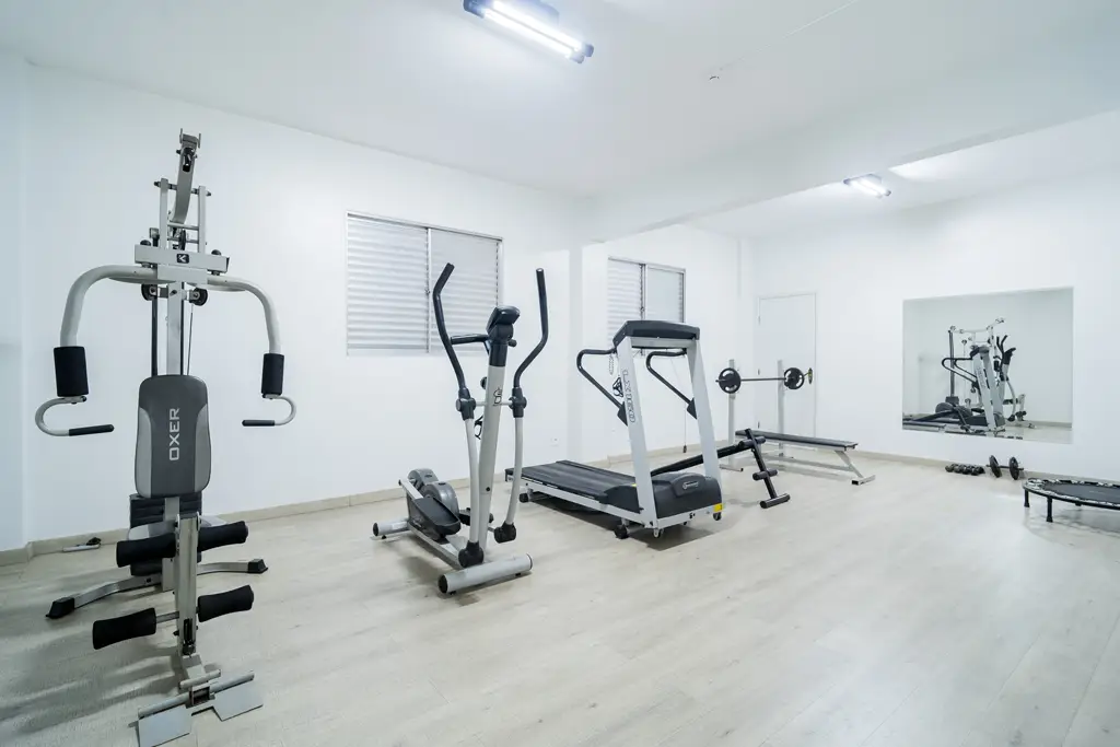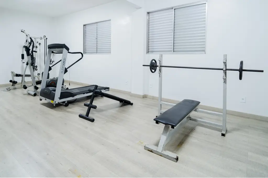Nossa academia moderna e climatizada está equipada para que você mantenha sua rotina de treinos durante a estadia. Um espaço ideal para cuidar do corpo e da mente, proporcionando conforto e praticidade em sua hospedagem em João Monlevade.