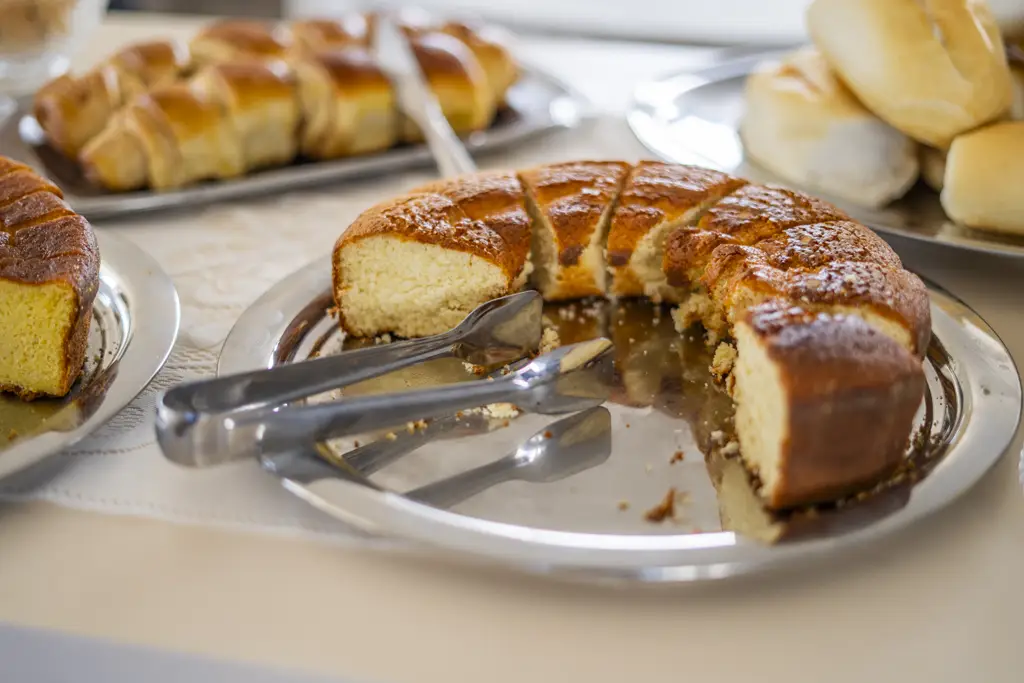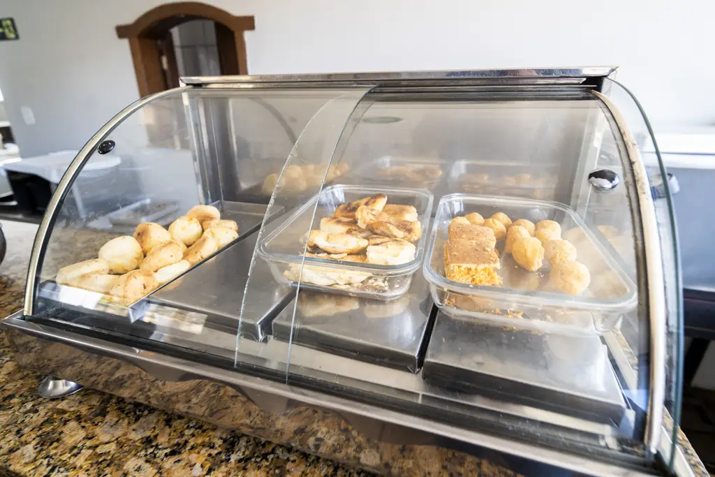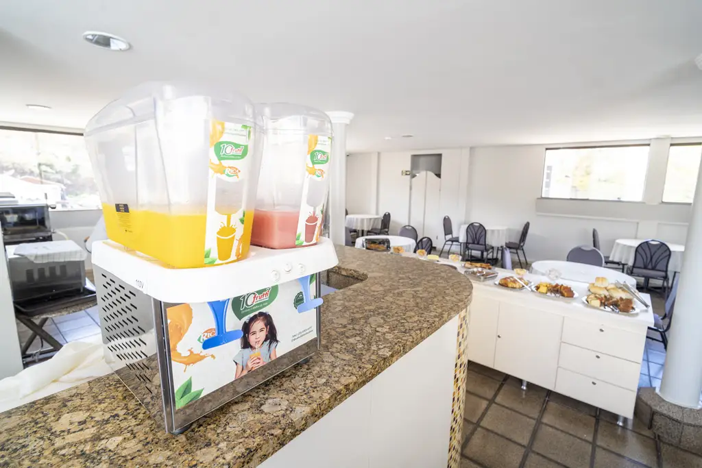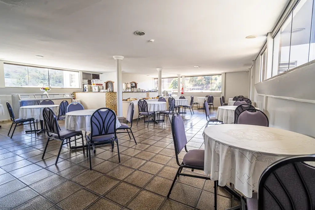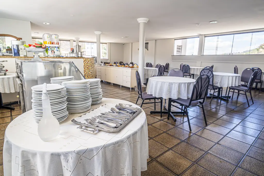 Um café da manhã colonial completo, com variedade de pães, frutas, bolos e quitandas regionais para começar o dia com energia e sabor.O Hotel Nacional oferece um café da manhã colonial variado, com pães, frutas, bolos, sucos e quitandas regionais. Uma refeição preparada para proporcionar energia e bem-estar, valorizando a gastronomia local e tornando suas manhãs ainda mais agradáveis.